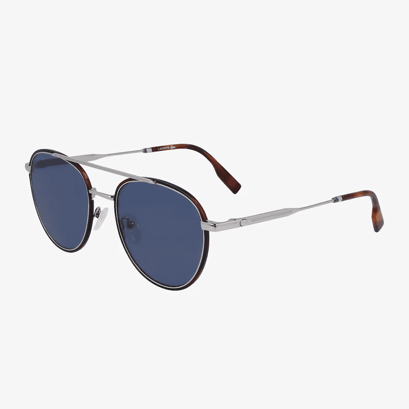A timeless masculine style, featuring a discreet vintage crocodile on the temples and a small colored circle on the temple tips. Sold in a medium blue hard case. Product can be fitted with prescription lenses.